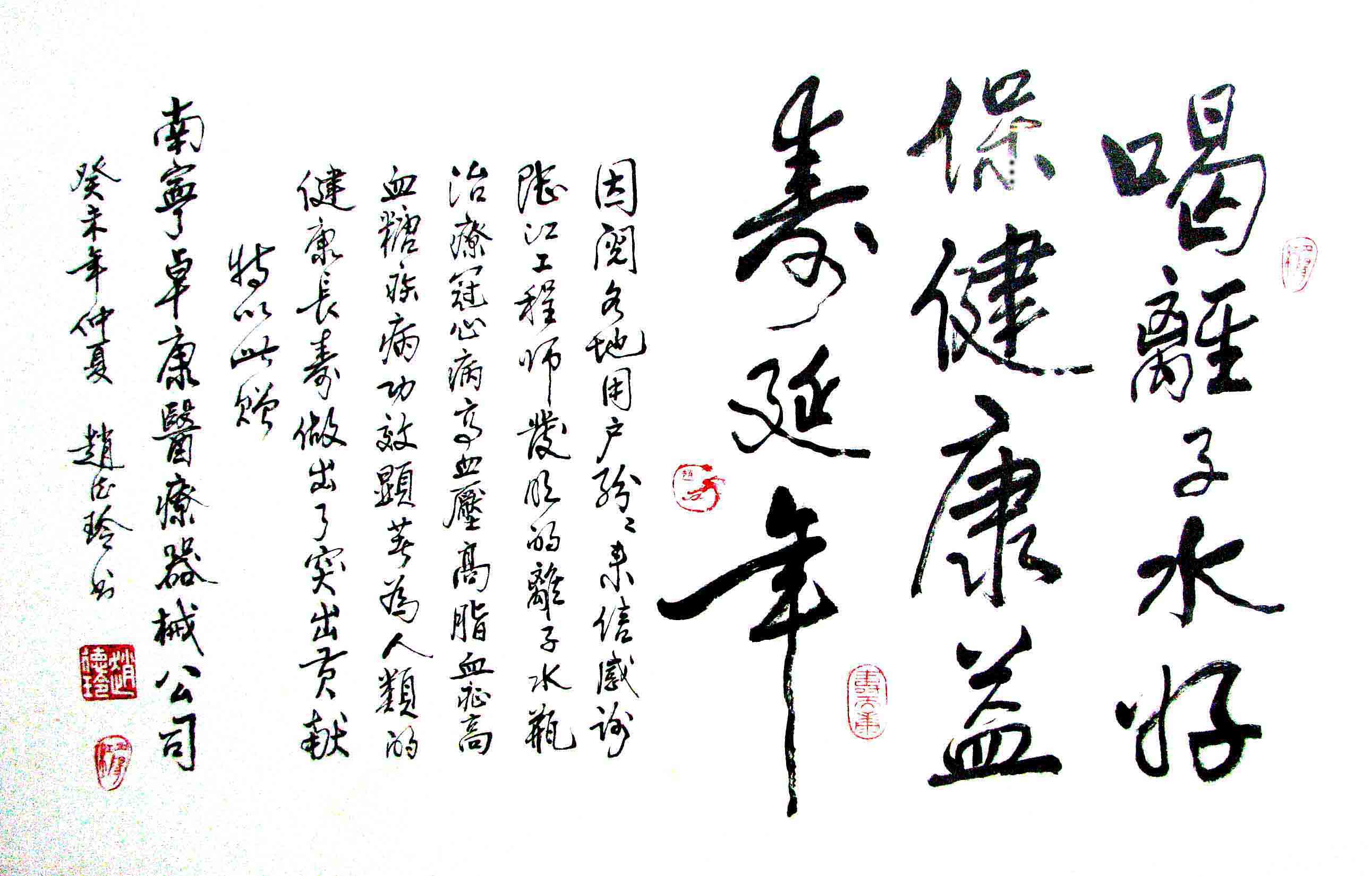 -----我是從事建筑的高工,本來沒有資格去攻克醫(yī)學(xué)難題,卻為了自身健康才扣響醫(yī)學(xué)的大門。由于我1990年患高血壓,因怕中風(fēng)才研究發(fā)明了離子水瓶,我把水處理成微小分子團(tuán)水,飲用后治愈了高血壓。便于1993年底送到三家省級醫(yī)院做臨床試用4個月。經(jīng)北京和廣西醫(yī)學(xué)專家鑒定:"降脂降壓效果好"," 能擴(kuò)大心腦動脈流量,改善心腦電圖以及微循環(huán)","對治療心腦動脈粥樣硬化、高血壓、高血脂有良好的醫(yī)療保健作用。""產(chǎn)品的技術(shù)性能和療效達(dá)到了同類產(chǎn)品的國內(nèi)領(lǐng)先水平,經(jīng)廣西醫(yī)學(xué)科學(xué)情報(bào)研究所檢索,未見國外有類似報(bào)道。"中國醫(yī)學(xué)科學(xué)院張正國教授從美國國立醫(yī)學(xué)圖書館數(shù)據(jù)庫存Medline檢索英俄文資料,均未見類似報(bào)告。2000年上市后,我為了對消費(fèi)者負(fù)責(zé)而繼續(xù)觀察研究,一直通過《信譽(yù)卡》和《質(zhì)量跟蹤調(diào)查書》向患者承諾療效,請用戶使用6個月后反饋效果。和脂壓患者飲用2至5個月內(nèi),消除癥狀,停服藥物,血壓正常;冠心病患者飲用3~5個月逐漸減輕至消除心絞痛、房顫等癥狀,不再服藥,飲用1年左右心電圖正常,經(jīng)冠脈造影掃描無明顯狹窄,表明冠心病痊愈。大量患者還反映許多衰弱器官被修復(fù),讓前列腺增生、慢性咽喉炎、慢性氣管炎、支氣管炎、慢性胃炎、腸炎和膽囊炎等不藥而愈;2型糖尿病患者是因?yàn)橐葝u衰弱致病,飲用該水半年至一年,逐漸減藥至停藥,血糖尿糖正常,真正治愈2型糖尿病。中風(fēng)后遺癥患者飲用六七個月,可逐漸減輕至消除肢體和語言障礙,表明飲用該水能讓壽命很長的神經(jīng)元細(xì)胞逐漸修復(fù),奇跡般地恢復(fù)肢體和語言功能。飲用后還使胸腺和脾臟兩個重要的免疫器官被修復(fù)和增強(qiáng),產(chǎn)生免疫細(xì)胞多,提高了免疫力,使人不生病或少生病。自此, 飲用微小分子團(tuán)水創(chuàng)造了攻克冠心病、高(低)血壓和糖尿病三大醫(yī)學(xué)難題的奇跡。人們對此感到不可思議,但實(shí)踐是檢驗(yàn)真理的唯一標(biāo)準(zhǔn)。