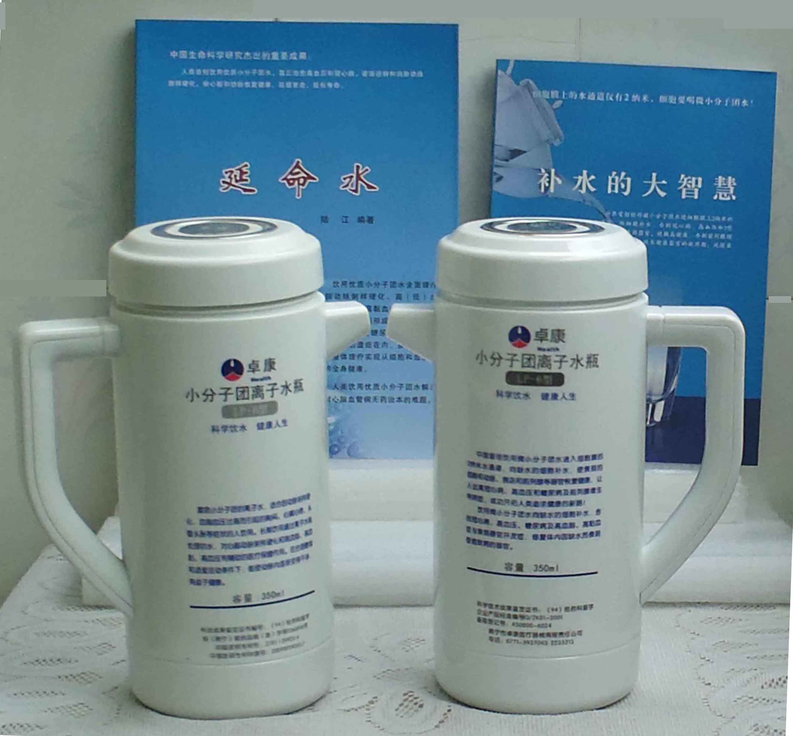 本品大量用戶的使用效果表明,能治愈冠心病、腦動脈硬化、原發(fā)性高(低)血壓、高血脂、高粘血癥、高血尿酸癥(痛風(fēng))和2型糖尿病、衰弱器官并發(fā)癥(前列腺增生、腎衰與尿毒癥)及中風(fēng)后遺癥等療效好。產(chǎn)品配信譽(yù)卡。使用壽命30年,不換芯,易清洗。團(tuán)購優(yōu)惠。從郵局匯款,匯費(fèi)1%,地址按本頁下方地址、聯(lián)系人寫。從銀行匯款,請點(diǎn)擊[聯(lián)系匯款]欄,從工商銀行匯款,建設(shè)銀行、農(nóng)業(yè)銀行匯款,均免收匯費(fèi),匯款后20--30分鐘內(nèi)發(fā)短信,可用微信轉(zhuǎn)帳,均免匯費(fèi),微信號即手機(jī)號13768308380。匯款后,告知你的姓名和地址,我公司聯(lián)系人手機(jī)號是:13768308380。卓康牌離子水瓶為我公司獨(dú)家生產(chǎn),郵購產(chǎn)品配《補(bǔ)水的大智慧》彩印書一本,另配四季出版社出版的新書《補(bǔ)水的大智慧》一本,并配光盤一張(含央視主持人釆訪陸江的對話視頻)。目前市場和"淘寶網(wǎng)"上有人兜售假冒的偽品,望讀者審察辯別真?zhèn)?,造假者剽竊假冒本公司的各種認(rèn)證、獲獎獎項(xiàng)、專利號和外包裝盒上的中英文字,包括科技成果的鑒定意見等,請讀者注意防偽。如何識別假貨?已經(jīng)買了假貨怎么辦?(請點(diǎn)擊[打假掠影][打假掠影])。