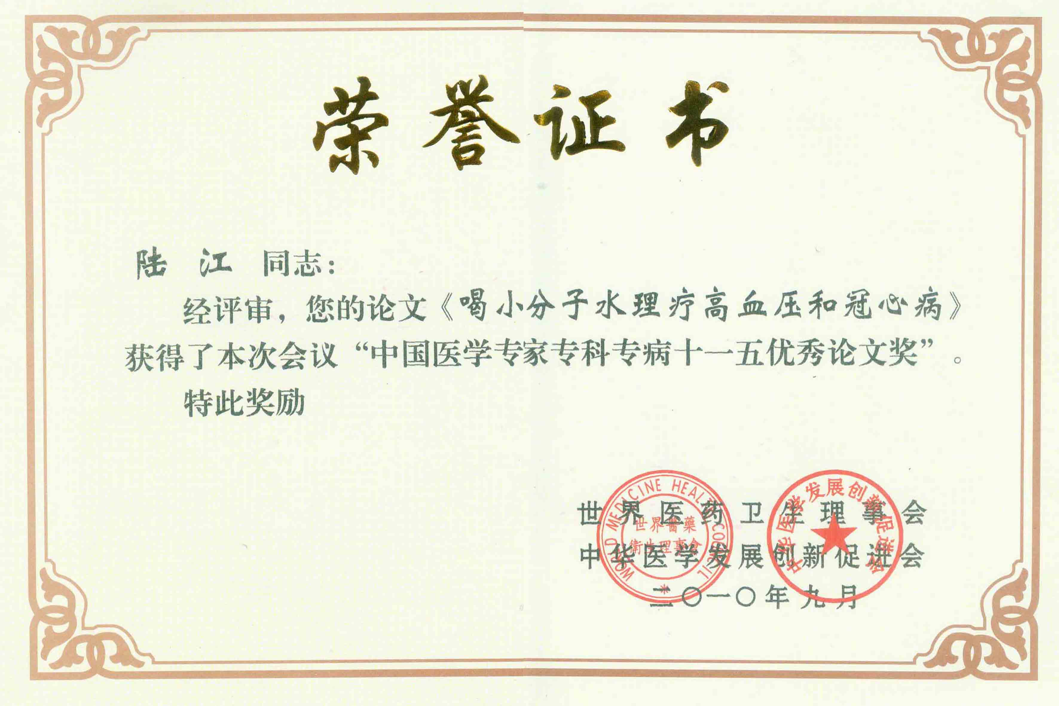 陸江獲得中國醫(yī)學(xué)??茖2?yōu)秀專家恃別貢獻(xiàn)獎